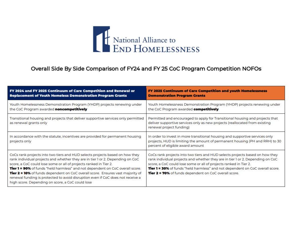 The National Alliance to End Homelessness released three documents that provide a side-by-side comparison of the since rescinded NOFO that was released in November against the new NOFO that was released on December 19, 2025.